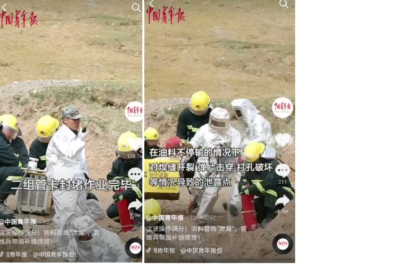 據《中國青年報》報道,9月19日西藏軍區青藏兵站某管線大隊組織實戰化輸油管線鋪設搶修演練。在油料不停輸情況下對焊縫開裂,單片穿孔,打孔破壞等情況導致的泄露點,官兵們采用補片焊接,管卡封堵,帶油焊接的方式對管線漏點組織搶修。 演練使用的時代焊機非常搶鏡,焊接設備也能守護邊防,我驕傲,我自豪!!!
